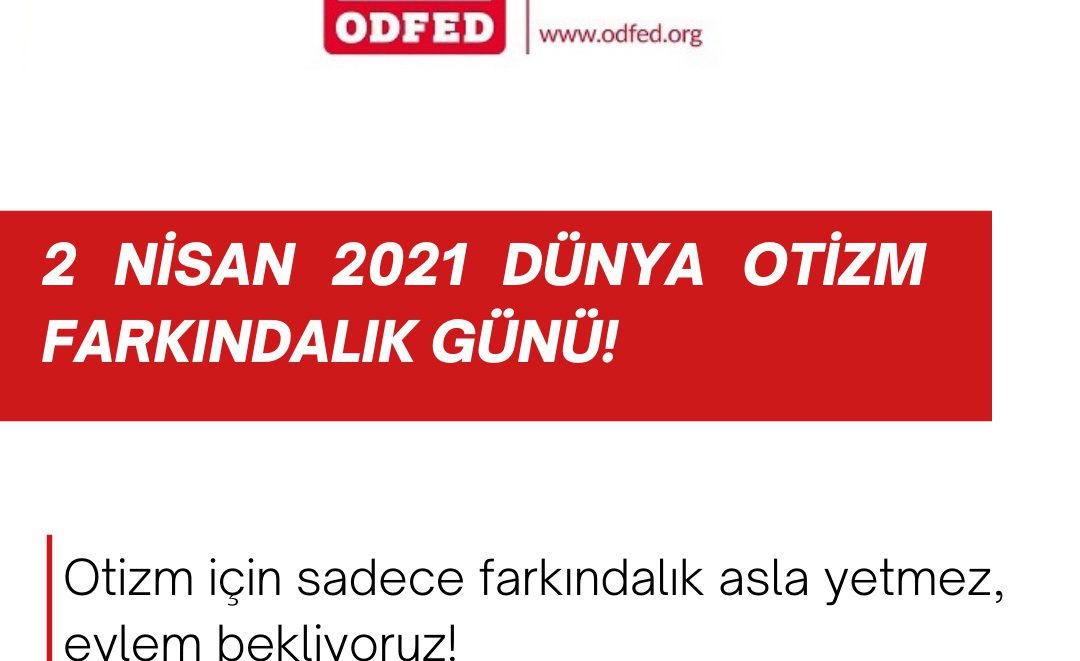 2 Nisan 2021 Dünya Otizm Farkındalık Günü Bildirisi Share via Facebook Twitter Pinterest 01/04/2021 at 20:39 Basın Açıklamaları, Bildirgeler, Genel, Haberler 2 Nisan, Dünya Otizm Farkındalık Günü, ODFED, otizm Nursemin Akkaş